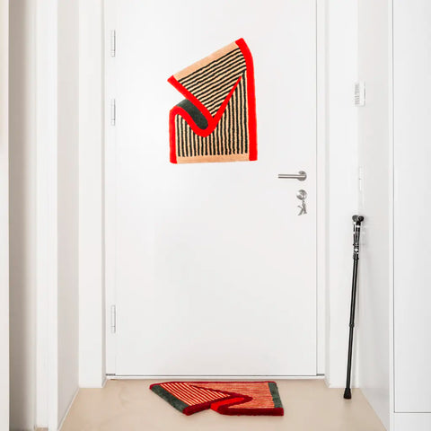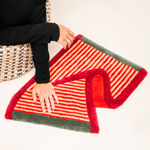 Un tapis ludique, fabriqué à la main, qui capture la beauté de l'imperfection avec une touche graphique audacieuse.